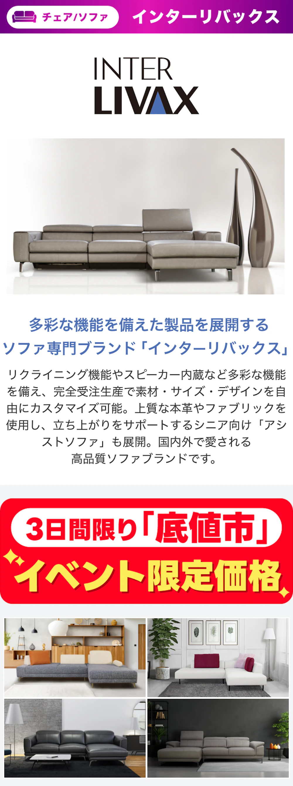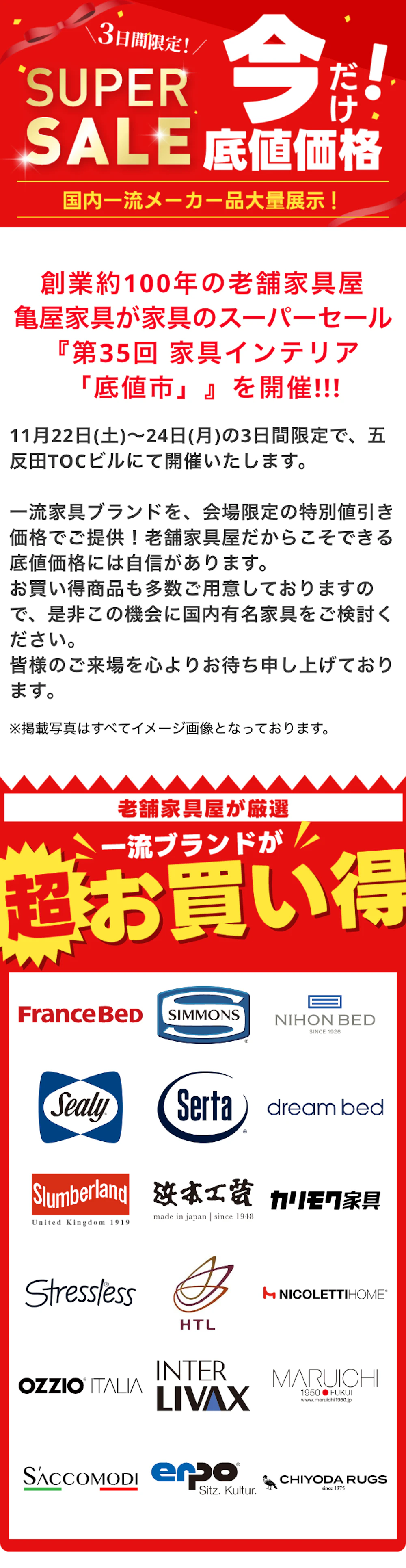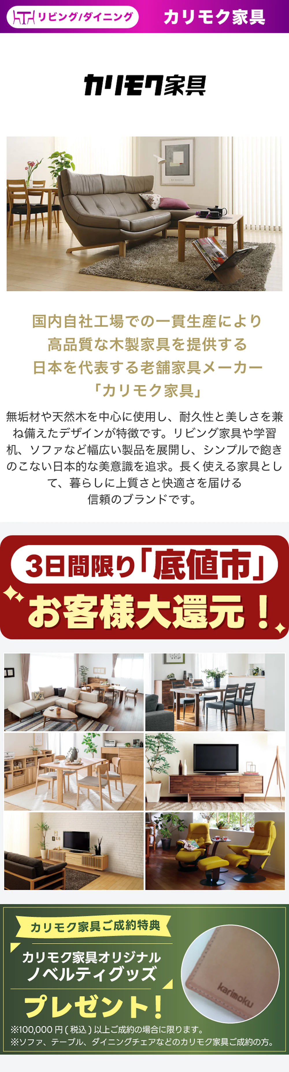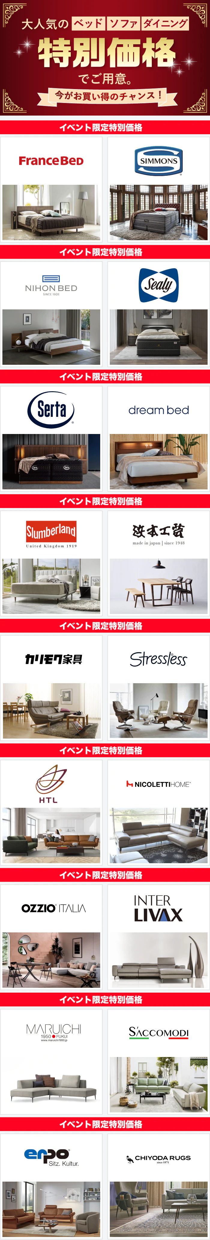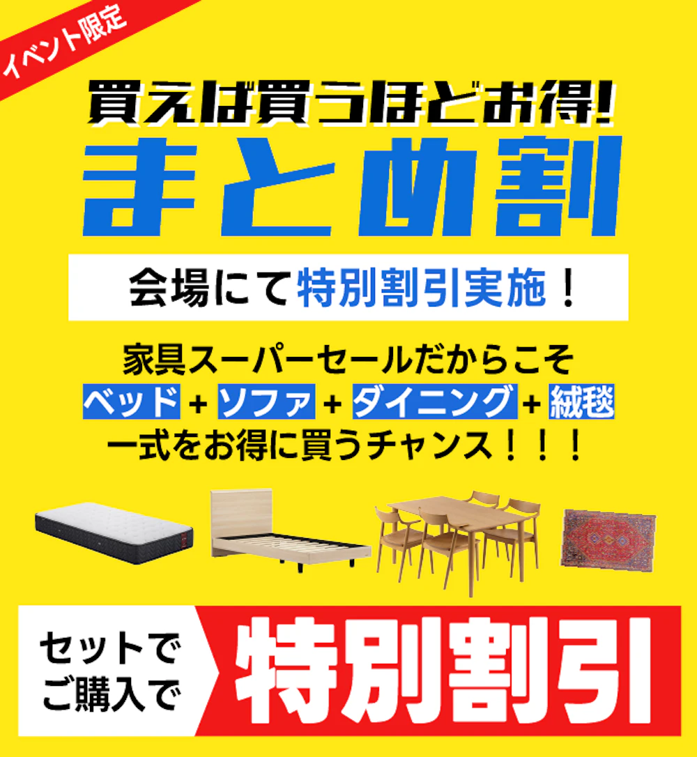 | 取扱商品 | 家具全般 ベッド・マットレス 布団・寝装品 |