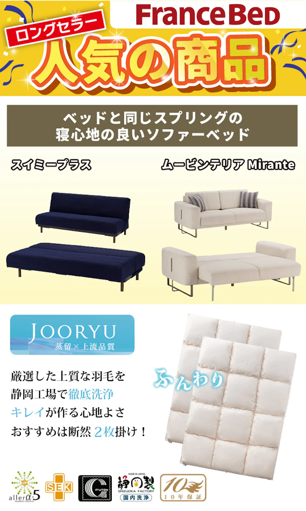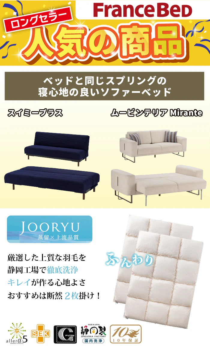 フランスベッド全品保証・アフターサービス!