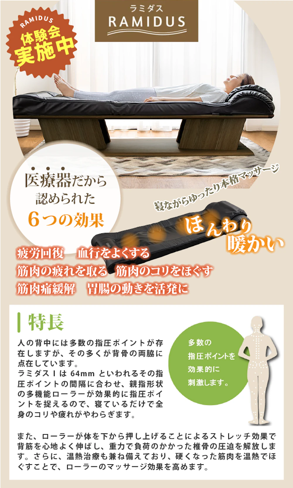 寝ながらできる全身マッサージ機『ラミダス』無料ご体験実施中!