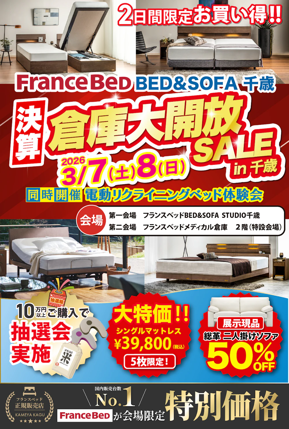 フランスベッドBED&SOFA STUDIO 千歳にて、スペシャルセールイベントを限定開催!