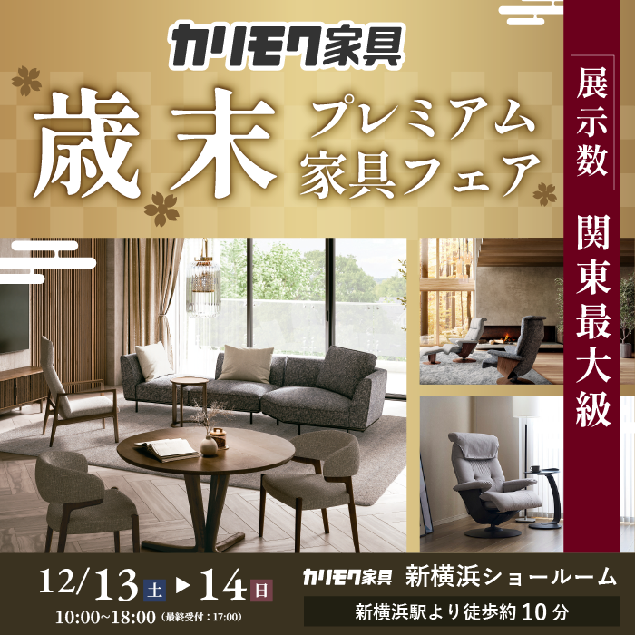 神奈川県横浜市港北区にある「カリモク家具 新横浜ショールーム」にて、『カリモク家具 秋の特選家具フェア』を期間限定で開催致します。