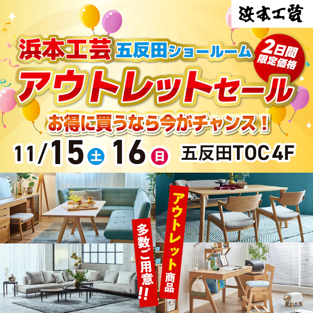 東京都品川区西五反田にあるTOCビル 4Fにある 【浜本工芸唯一のアウトレットショールーム】にて、『浜本工芸 五反田ショールーム アウトレットセール』を期間限定にて開催!