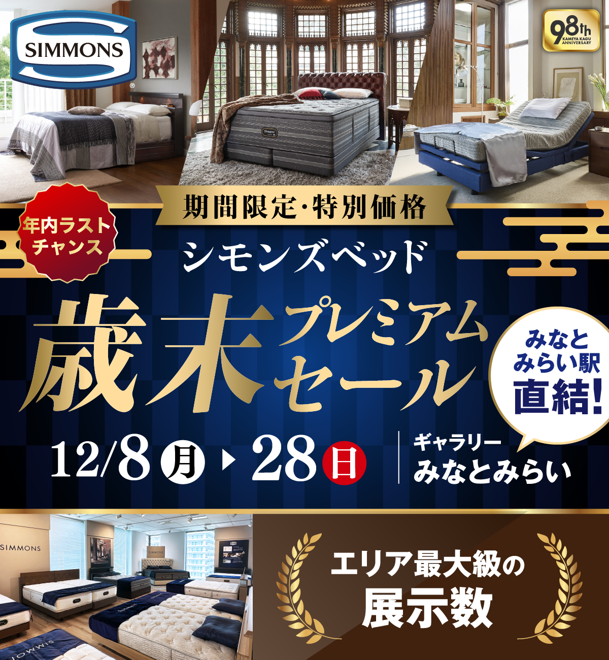 シモンズのすべてのマットレス・ベッドフレーム・電動リクライニングベッド・羽毛布団・寝装品を「特別価格」にてご提供!