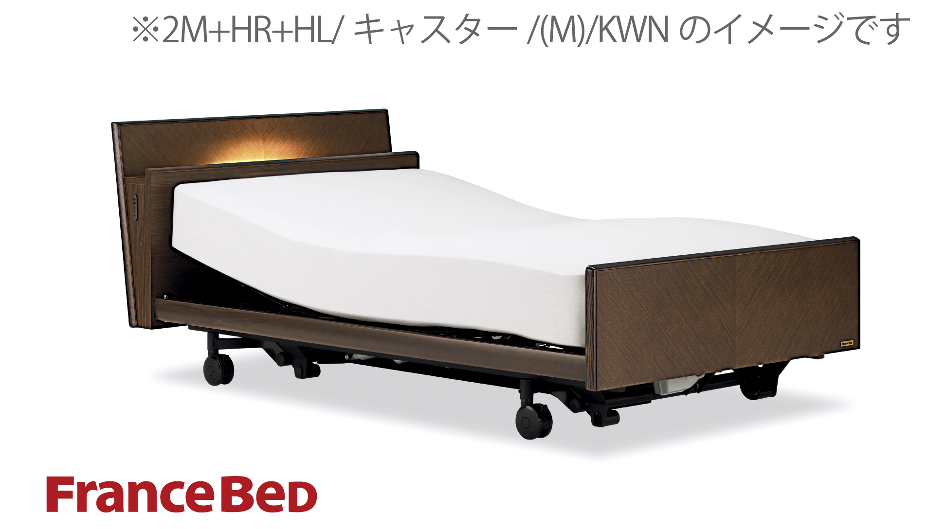 2M+HLの商品ページです。 背上げ+脚上げ+上下昇降機能。上半身を起こすリクライニング機能に加え、ベッドが上下昇降するので介護のしやすさや安全性・快適性も向上します。